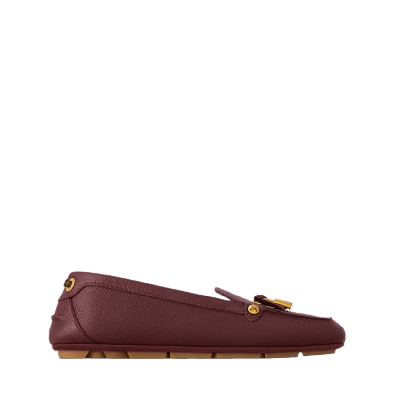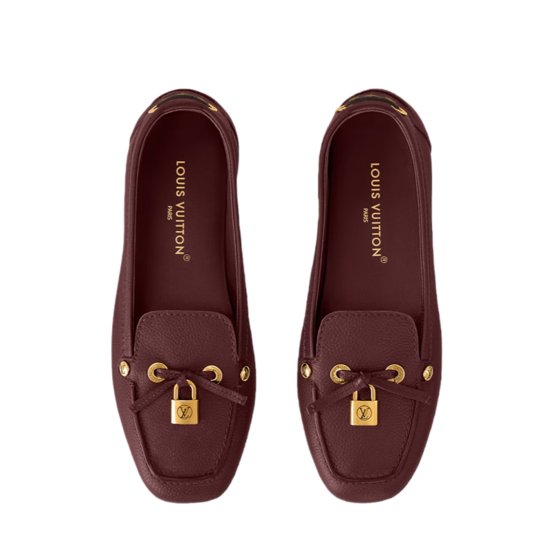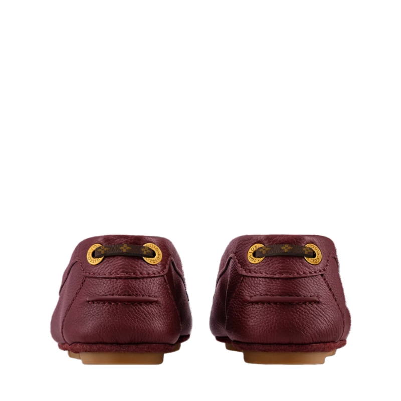 The Flore car shoe is a casual-chic style in grained calfskin. The supple leather complements the comfortable, lightweight design of this model, which features a flexible rubber-pad outsole. The upper is embellished with refined details, including a signature padlock accessory, engraved studs and eyelets, and a lace in Monogram canvas.