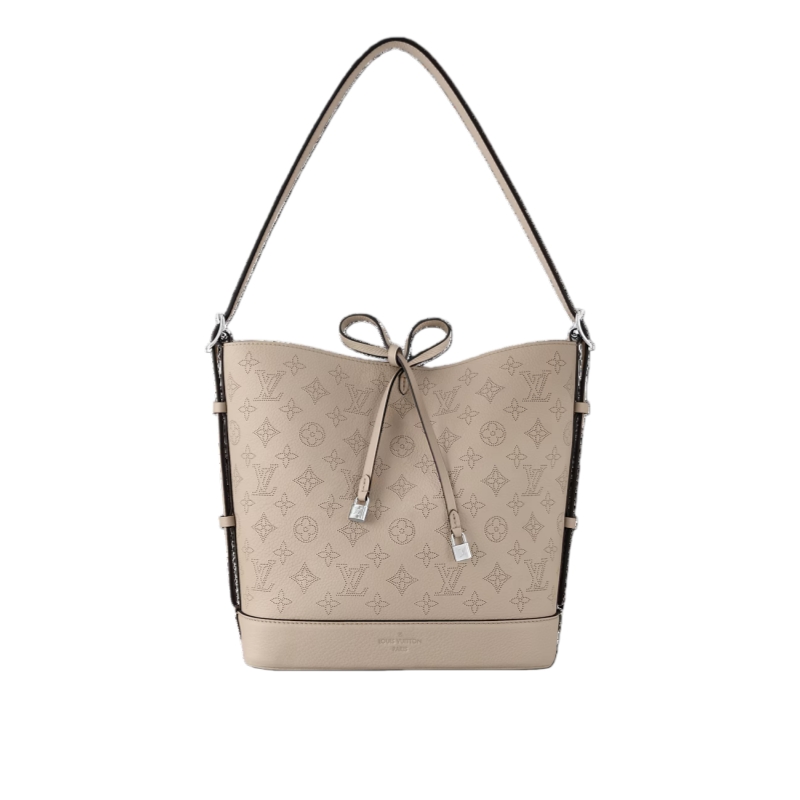 Introducing the brand new Flore handbag, designed in a modern bucket silhouette that feels functional yet sophisticated. It is crafted from Mahina calfskin leather, which is perforated with the House’s signature Monogram pattern and accented with silver-toned hardware. The versatile shape secures with a knot closure and has a zipped pocket inside to store valuable items.