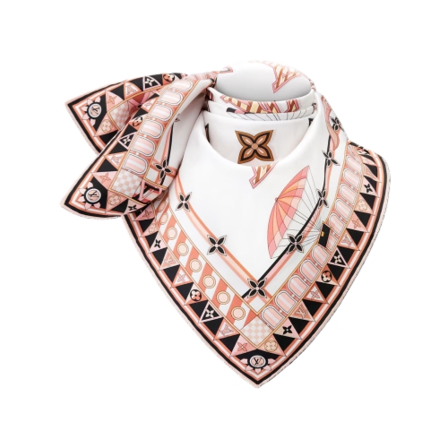 The Louis Vuitton travel spirit takes to the sky with the all-silk From The Cloud square. Elegantly evoking the House’s rich heritage, its vibrant, creative pattern portrays a fleet of finely detailed hot air balloons against a Monogram background. Perfect for adding an aura of ethereal chic to an everyday outfit.
