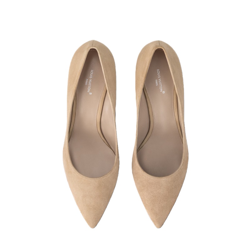 The velvety texture of suede calf leather complements the sleek lines of the Gala pump. This timelessly elegant model is distinguished by its pointed toe, low cut at the front and slender stiletto heel. It is finished with a fine leather outsole, which is signed with a gold-toned LV Initials accessory.