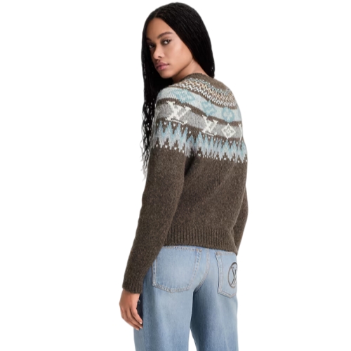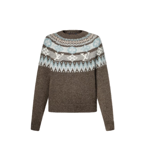 This pullover has timeless après-ski appeal in a soft and warm alpaca-blend knit spun with colorful, graphic motifs across the shoulders peppered with Louis Vuitton signatures. It is crafted in a regular fit with a crew neckline and finished with ribbed hems for casual, comfortable styling.