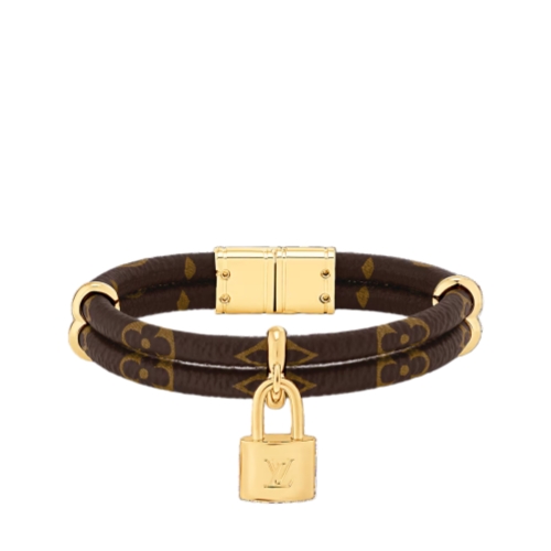 The Keep It Twice bracelet in Louis Vuitton's iconic Monogram canvas is a cute and feminine accessory that can give a modern twist to any outfit. The padlock charm, inspired by Louis Vuitton's trunks, is engraved with the Louis Vuitton logo and the bracelet closes with a safe yet easy to use lock.