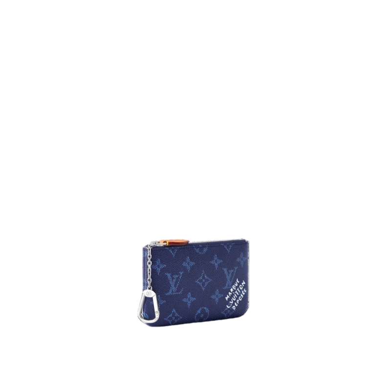 Updated in a seasonal colorway, this small Key Pouch is crafted from Monogram Heritage canvas, paying tribute to the House’s heritage and quality craftsmanship. It is trimmed with smooth cowhide and includes a silver-toned chain, complete with a hook to attach keys. There is enough space inside to store coins and bills.