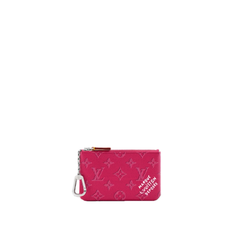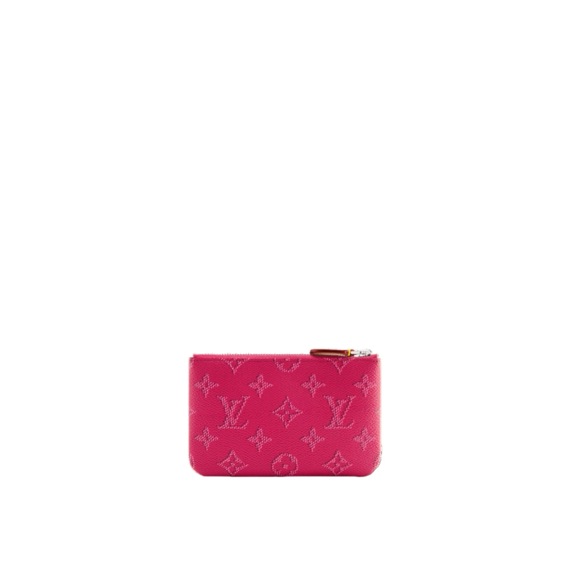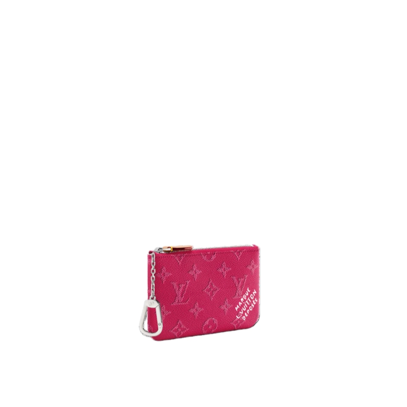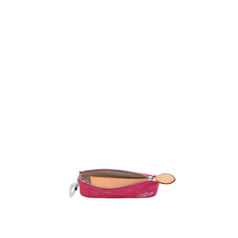 Updated in a seasonal colorway, this small Key Pouch is crafted from Monogram Heritage canvas, paying tribute to the House’s heritage and quality craftsmanship. It is trimmed with smooth cowhide and includes a silver-toned chain, complete with a hook to attach keys. There is enough space inside to store coins and bills.
