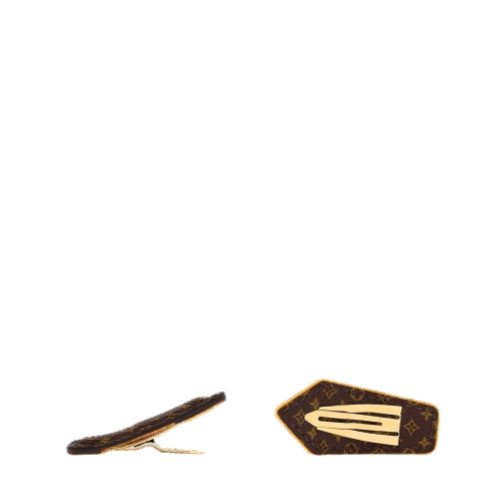 The classic barrette is back in style, and the LV Backstage hair clip is right in step with the trend. Its sleek geometrical shape is highlighted by a colorful calfskin lining, accented by the LV Initials in gold-toned metal. The iconic Monogram pattern on the reverse side adds an extra House touch to this strikingly original, versatile barrette.