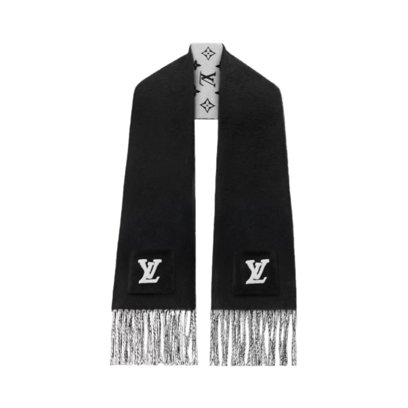 Infused with signature chic, the LV Blizzard scarf offers a striking blend of style and versatility. Crafted in pure, plush cashmere adorned with the Monogram pattern, it features mink fur pockets for an extra touch of warmth and sophistication. Draped over a coat or paired with a casual outfit, it enhances any winter look with sumptuous elegance.