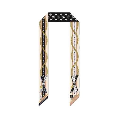 The sophisticated all-silk LV Bow BB bandeau offers a creative fusion of feminine delicacy and contemporary chic. Its artistic print depicts a ribbon of Monogram Flowers intertwined with fine-linked chains and tied in an elegant bow. Worn around the neck or wrist, or accenting a handbag, this colorful accessory adds a stylish, refined accent to any look.