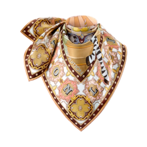 The all-silk LV Carrousel square brings the enchantment of childhood and fairground rides to life in a richly detailed design. Its artistic pattern features playful carousel and circus animal motifs in a palette of vibrant colors, framed by a distinctive Louis Vuitton signature border. Ideal for adding a whimsical touch of elegance to an everyday look.