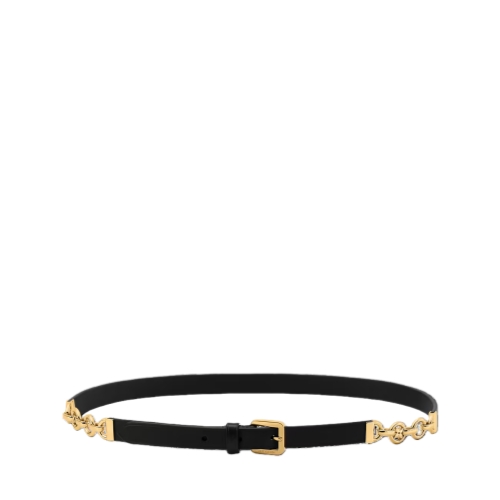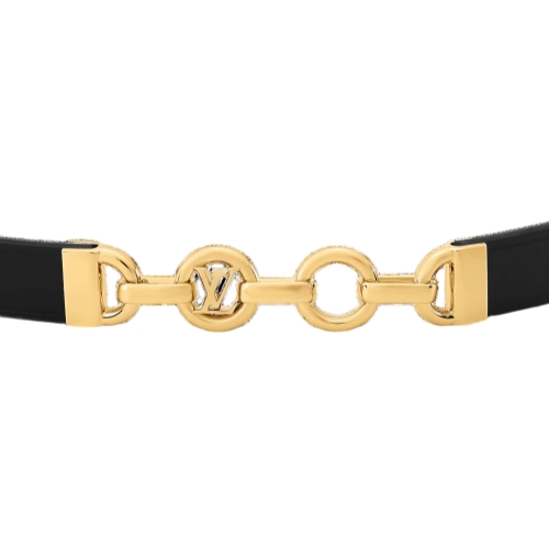 The LV Circle Blossom belt features a sophisticated mix of materials for a unique, stylish look. Its slim strap pairs sleek calfskin with lustrous gold-colored chain links, accented with a Monogram Flower and an LV Circle for a subtle signature. Ideal for both casual and formal occasions, this versatile belt is a masterpiece of Louis Vuitton craftsmanship.