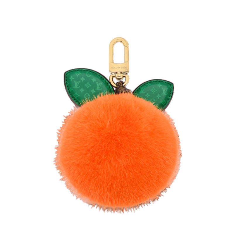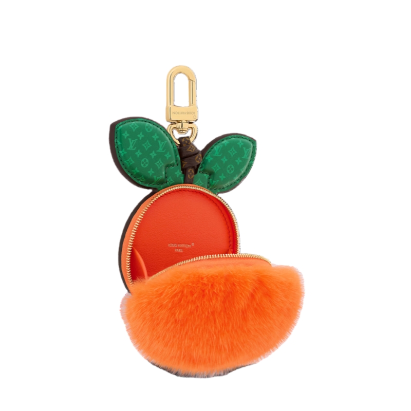 The expertly crafted LV Clementine pouch is a delightful treat for the eyes and the touch. Its playful design features leather and soft, opulent mink fur in the shape of a colorful clementine, perfect for brightening up any outfit. And it zips open to reveal a handy compartment, ideal for carrying earbuds and other small personal items.