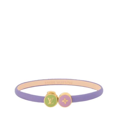 The casual-chic LV Confetti bracelet offers an eye-catching variation on the House’s beloved icons. Its slim leather strap features a colorful metal and enamel closure in the form of two confetti-like disks adorned with a Monogram Flower and the emblematic LV Initials. This fun, easy-to-wear bracelet adds a playful creative accent to any look.
