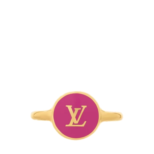 Crafted in lustrous gold-toned metal, the LV Confetti ring pays homage to the iconic Monogram signature in an upbeat, festive spirit. Its whimsical design features a disk of brightly colored enamel adorned with a delicate Monogram motif. Worn alone or stacked, this eye-catching ring adds a playful House touch to any look.