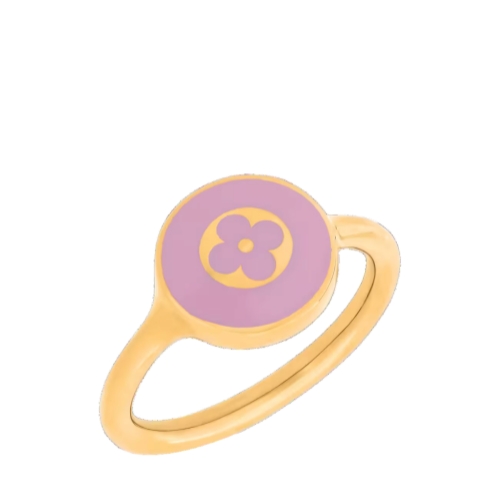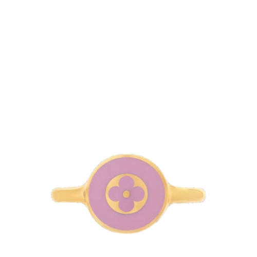 Crafted in lustrous gold-toned metal, the LV Confetti ring pays homage to the iconic Monogram signature in an upbeat, festive spirit. Its whimsical design features a disk of brightly colored enamel adorned with a delicate Monogram motif. Worn alone or stacked, this eye-catching ring adds a playful House touch to any look.