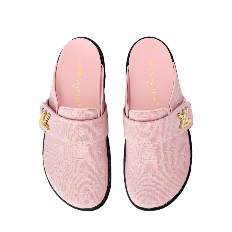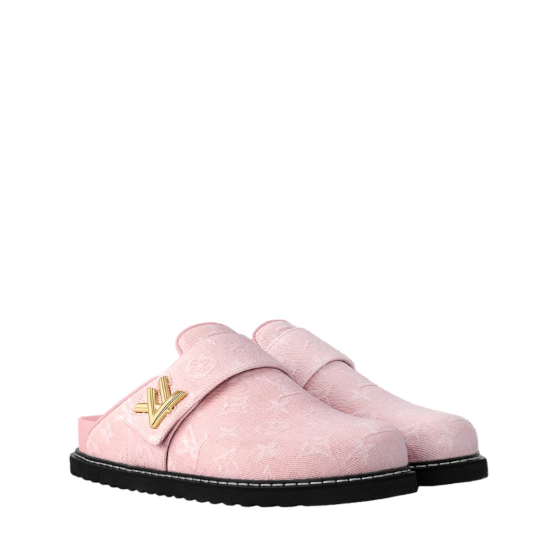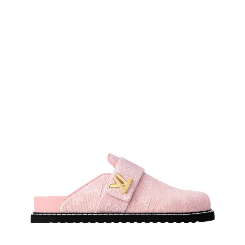 Monogram denim complements the relaxed design of the LV Cosy flat comfort clog. This easy-to-wear slip-on is elevated by refined details, including leather piping and an adjustable leather strap, which is signed with an LV Twist accessory. It has a comfortable anatomic footbed, which is covered in leather, and a lightweight micro outsole.