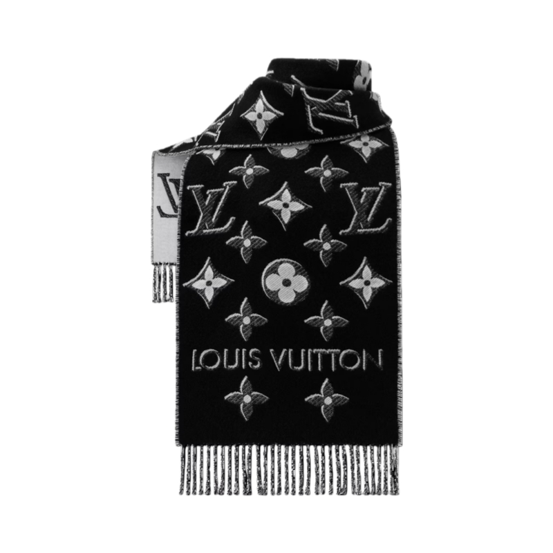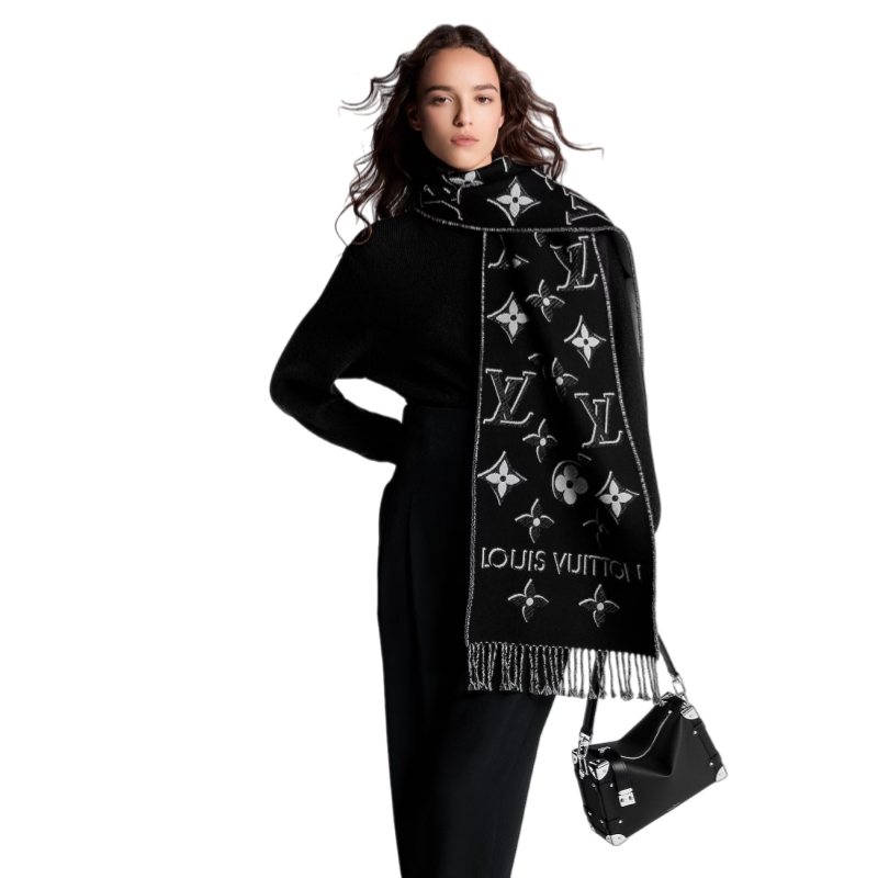 The LV Essential Shine scarf offers a casual alternative to the Reykjavik and Logomania scarves. An eye-catching twist on the Monogram pattern has been meticulously crafted with a shimmering effect thanks to the addition of metallic fibers. Fringed edges add a sleek finishing touch to this luxuriously soft accessory.