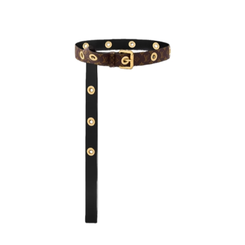 Originally created for the Louis Vuitton Cruise 2023 collection, the LV Eyelets 30mm belt expresses a bold contemporary look. Crafted in classic Monogram canvas, its slim extra-long strap is studded with gleaming golden-toned eyelets for a strikingly edgy