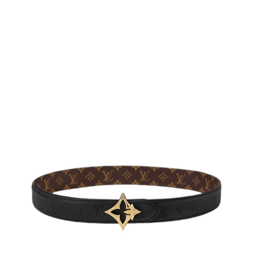 Inspired by a theme from the House’s Fashion Jewelry, the LV Flowergram 30mm reversible belt brings an artistic new look to a House icon. The eye-catching buckle is a double Monogram Flower, outlined in gold-finish metal with a smaller flower on one side. Its reversible design pairs Monogram canvas with sumptuous Monogram Empreinte leather for a subtle added signature.