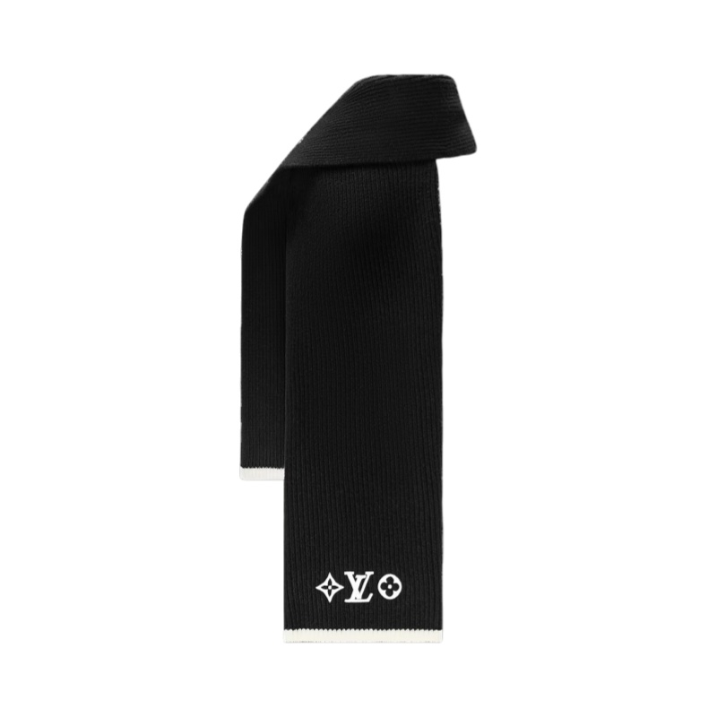 The LV Headline scarf is a celebration of House craftsmanship with its luxuriously soft knit and meticulous detailing. The Monogram Flowers signature is embroidered at opposite corners of the piece, alongside contrasting edges. The pure wool winter accessory is a casual and elegant option for cold-weather dressing.