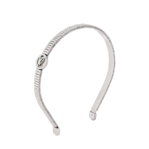 With its fine detailing and eye-catching signature style, the LV Iconic Strass headband adds a flourish of sophistication to a festive year-end look. Crafted in bright palladium-toned metal studded with dazzling rhinestones, it features an LV Circle emblem for a refined House touch. More than a hair accessory, this stunning headband is an elegant statement piece.
