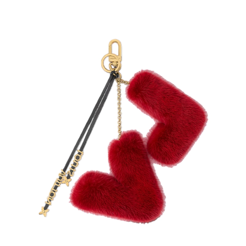 The strikingly original design of the enchanting LV Initials key holder and bag charm showcases a classic House icon. The famous LV Initials are crafted in plush, colorful mink fur, accented by a Louis Vuitton signature and Monogram Flowers in bright gold-toned metal. Ideal for adding a dazzling touch of glamour to a handbag or key ring.