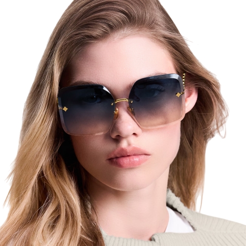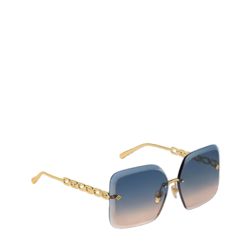The oversized square shape of this season's LV Jewel Square sunglasses makes them a standout style. This iteration is balanced by rimless and faceted lenses and includes refined details such as a slender signature chain on the temples. House signatures include LV Initials and Monogram Flowers, which are embedded into the design of the chain.