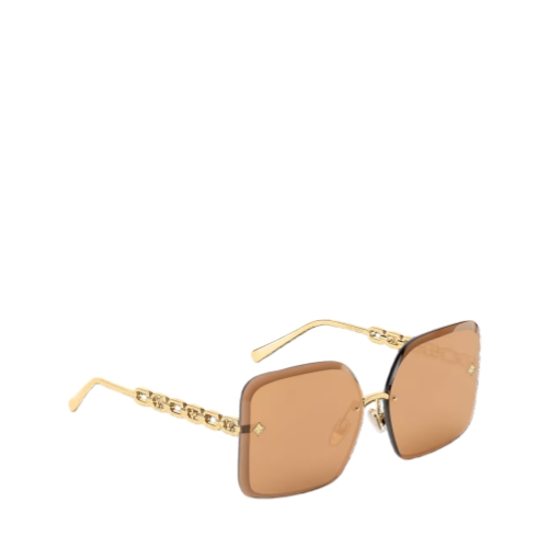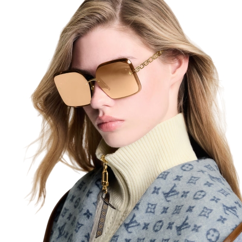 The precious design of the LV Jewel Square sunglasses combines a bold, striking look with rich signature detailing. Their finely crafted chain-link temples integrate the iconic Monogram Flower and LV Initials emblems, echoed by flower-shaped studs on the faceted lenses. Perfect for adding a refined touch of glamour to any winter outfit.