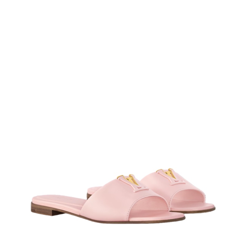 The LV Mare flat mule is an elegant, timeless style in smooth calf leather. It is distinguished by its wide front strap, which is embellished with a partially leather-covered LV Initials accessory inspired by the emblematic Capucines bag. This model is finished with a leather-covered insole and a durable leather outsole.