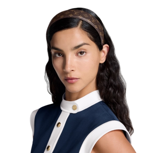 Elegant and easy to wear, the LV Outline headband makes a subtle but eloquent signature statement. With Monogram canvas on the outside plus a fine leather lining, its ingenious ergonomic design ensures a perfect fit, keeping the hair neatly in place all day long. A hot-stamped Louis Vuitton signature on the inside adds a discreet House touch.