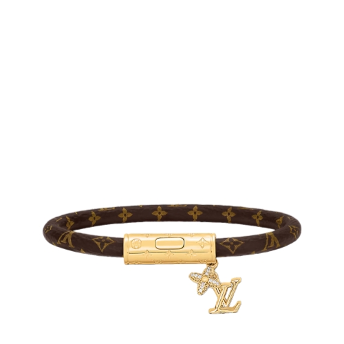 The design of the LV Push bracelet was inspired by the House’s emblematic icons. Both the canvas cord and the gold-tone metal clasp feature the heritage Monogram pattern, echoed in two charms: an LV signature and a Monogram Flower studded with sparkling crystals. An elegant addition to any outfit, it makes a wonderful gift for Monogram fans.