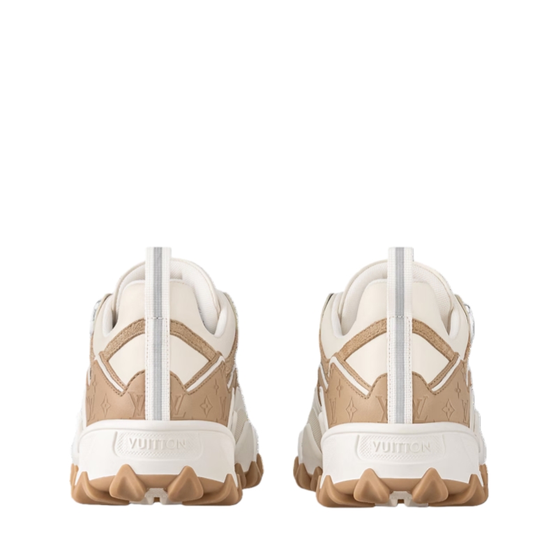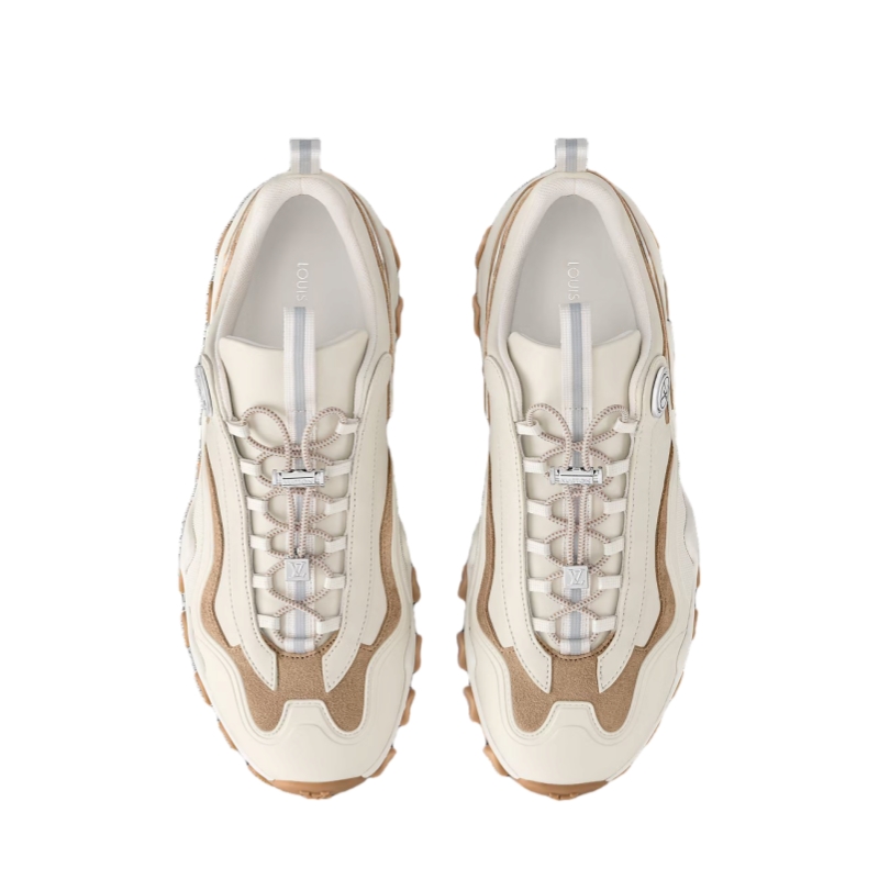 Designed by Louis Vuitton Artistic Director Nicolas Ghesquière, the LV Rush sneaker was inspired by trail shoes. This version comes in supple calf leather and combines an elegant look with a sporty feel. Key features include the metal LV Circle accessory on the side and the wave-patterned outsole.