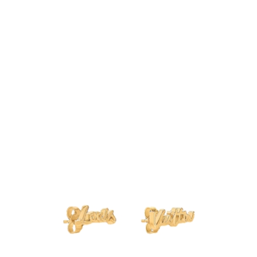 The eye-catching LV Script stud earrings feature an original House signature spotlighted in the Spring-Summer 2025 runway show. Delicately crafted in radiant gold-toned metal, their finely detailed design spells out Louis Vuitton in a sleek, fluid script style. Whether for everyday or formal occasions, these distinctive earrings bring a touch of fantasy to any look.