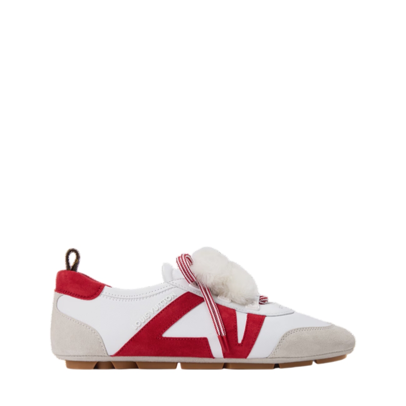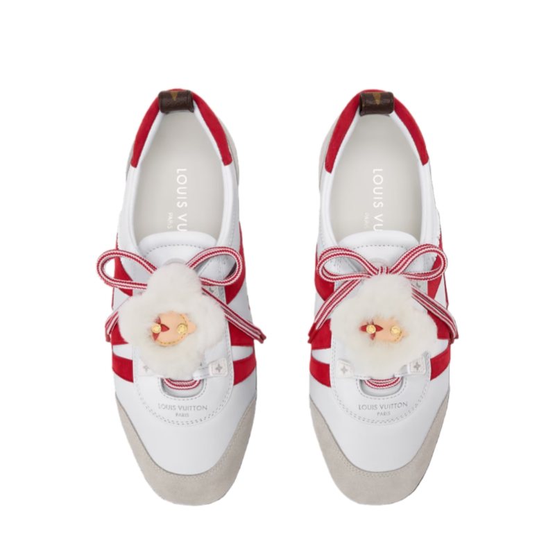 This exclusive edition of the LV Sneakerina sneaker celebrates the Chinese Year of the Horse. The upper is made of soft napa and suede calf leather and is accessorized with a shearling charm featuring the Louis Vuitton Vivienne mascot. Supple and lightweight, the LV Sneakerina combines the benefits of a sneaker and a ballet pump.