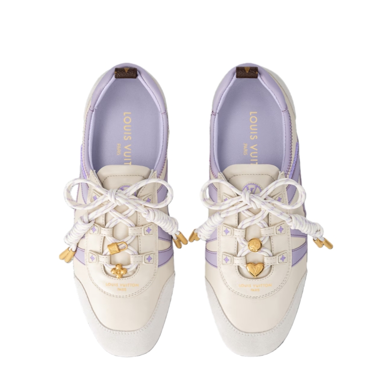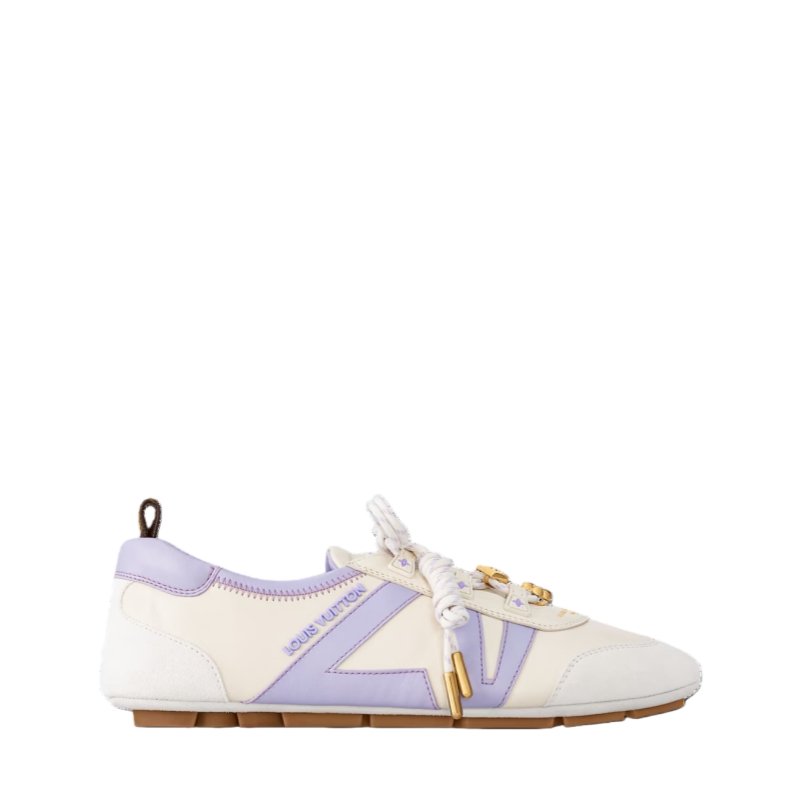 This version of the LV Sneakerina sneaker ballerina comes in a mix of materials, including lambskin and suede calf leather. This innovative design combines the comfort of a sneaker with the lightness of a ballet pump, and features an ultra-flexible TPU outsole. Key details include gold-toned lace accessories and an LV signature on the side.