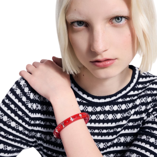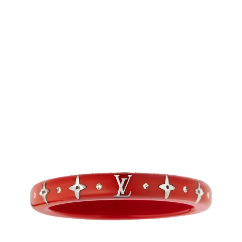 The warmth and radiant colors of a summer sunset inspired the dazzling design of the LV Sparks bangle. A slim hoop of luminous resin is adorned with the emblematic Monogram Flowers and LV Initials styled in sparkling rhinestones. Catching the light with every movement, this strikingly original jewel adds a glimmer of contemporary chic to any look.
