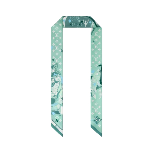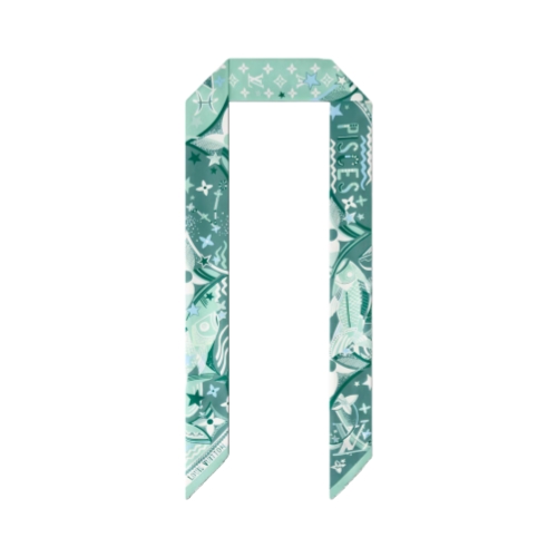 Inspired by the enchantment of astrology, the LV Star Sign Pisces BB bandeau pays homage to the sign of the fish. Printed on fine silk, its intricate pattern mixes astral and aquatic motifs with the House’s iconic Monogram Flowers for a creative signature touch. An elegant accessory to be worn as a symbolic personal statement piece.