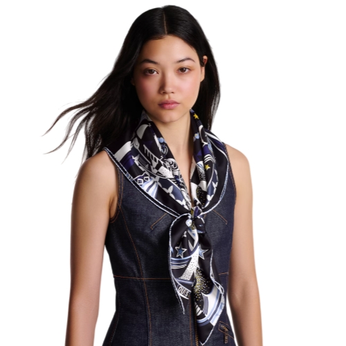 The creative, eye-catching design of the LV Star Sign square was inspired by the mystique of the zodiac. Printed on plush silk, its intricate pattern is an enchanting star chart mixing astrological signs with Monogram Flowers and the LV Initials for a subtle House signature. Perfect for adding a sophisticated touch of celestial elegance to any outfit.