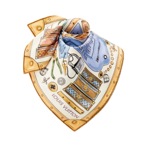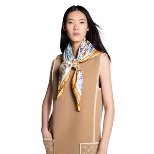 The all-silk LV Tool Box square offers a unique blend of practicality and sophistication. Its richly detailed pattern features an array of tools and components evoking the House’s trunk-making heritage, mixed with Louis Vuitton icons like Monogram luggage tags and padlocks. An ode to craftsmanship and ingenuity, it brings a touch of glamorous refinement to any outfit.