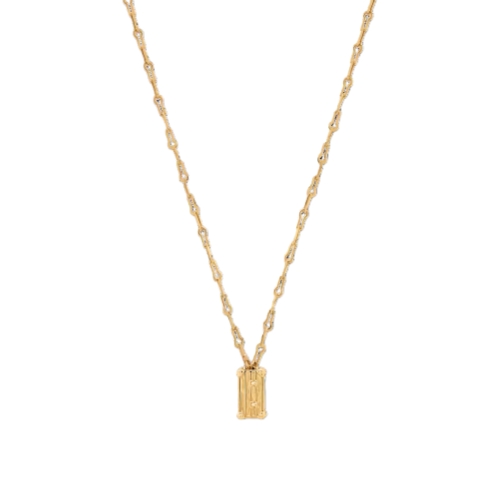 The distinctive design of the LV Trunk necklace showcases the House’s luggage-making heritage with contemporary flair. Suspended from a gold-toned keyhole link chain, its intricately detailed pendant depicts a vintage-style Louis Vuitton trunk. An elegant necklace to be worn as a talisman, infused with the spirit of travel and adventure.
