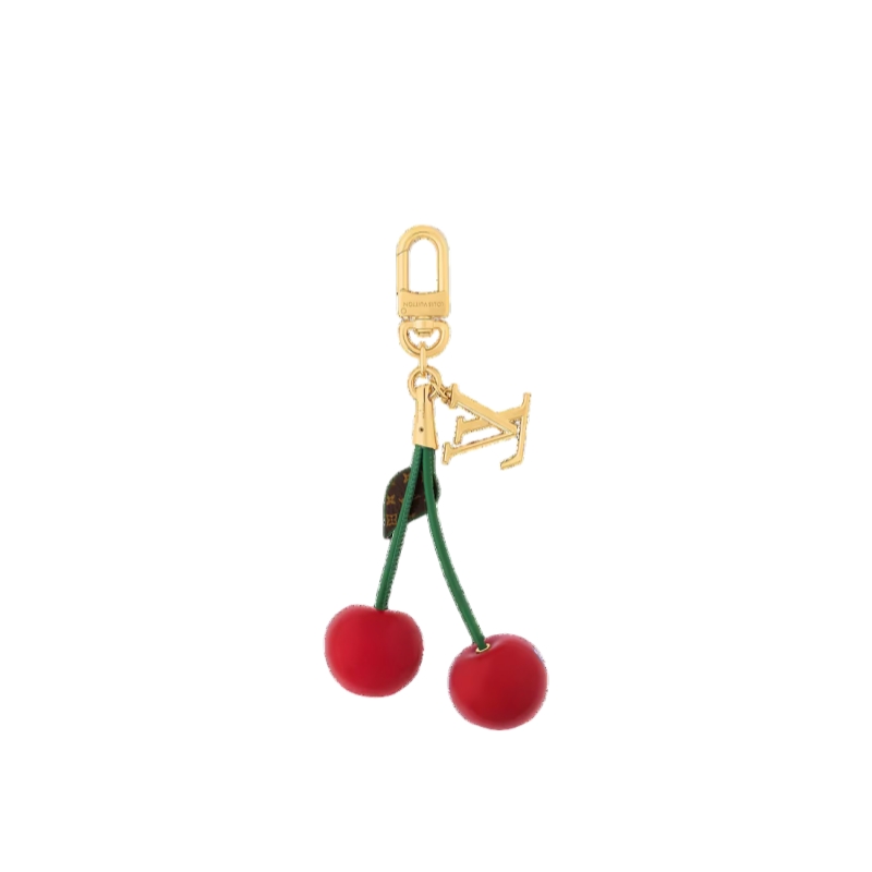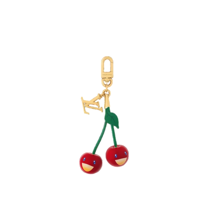 The fun and colorful LV x TM LV Cerise bag charm was created for the re-edition of the exclusive Louis Vuitton x Murakami collection. Crafted in lustrous gold-toned metal and plexiglass, it features a pair of the Japanese artist’s whimsical cherries, plus an LV Initials emblem for a classic House signature. An eye-catching accessory, perfect for adding a summery, on-trend touch to a favorite handbag.