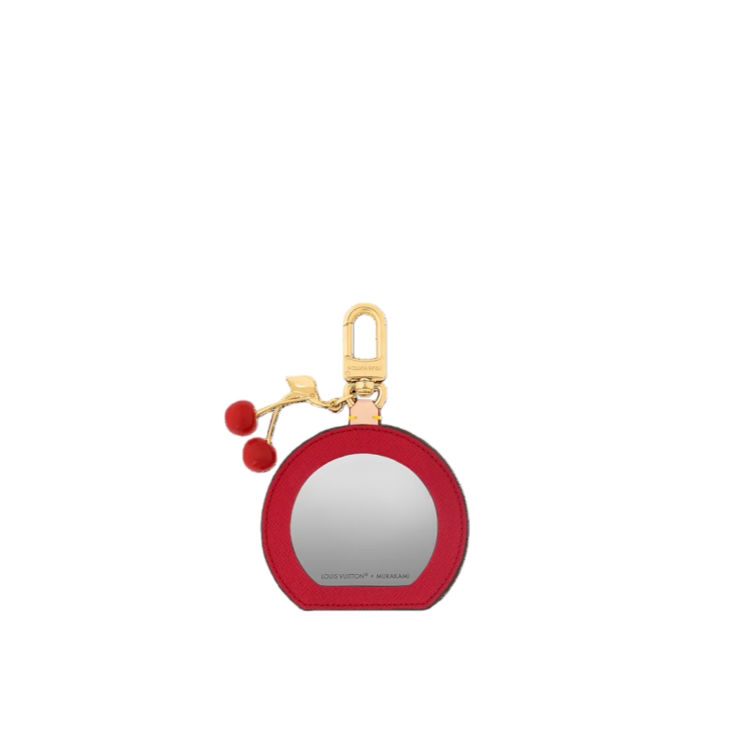 Created for the re-edition of the Louis Vuitton x Murakami collection, the two-in-one LV x TM Cerise LV Mini Mirror bag charm combines a distinctive signature design with practical functionality. Crafted in Monogram canvas enlivened with colorful Murakami-style cherry charms, the reverse features a handy pocket mirror. Perfect for touching up makeup on the go, it makes an ideal complement to the handbags and other accessories in the collection.