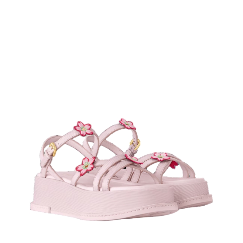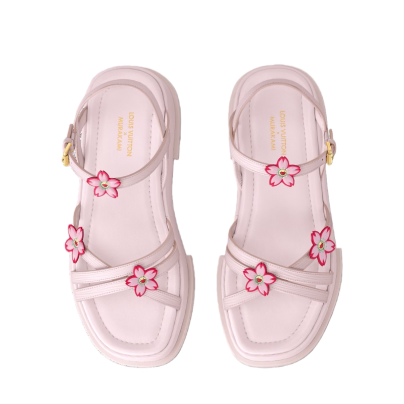 The Maya flatform sandal makes a spirited statement as part of the re-edition of the coveted cross-category Louis Vuitton x Takashi Murakami collection. Crafted from textured Epi grained calf leather in a fresh shade of pink, the proportions of the chunky platform are offset by the upper’s slim straps, which are embellished with vibrant Cherry Blossom patches in the Japanese artist’s vernacular playful style.