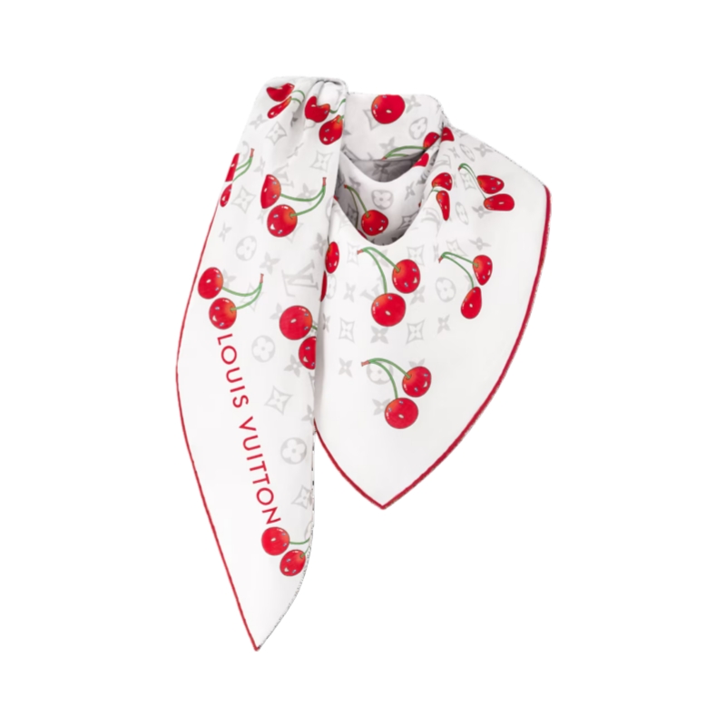 The creative design of the LV x TM Monogram Cerise shawl was dreamed up for the re-edition of the exclusive Louis Vuitton x Murakami collection. Printed on premium cotton, it combines a delicate Monogram background with an array of brightly colored cherries, echoing an iconic theme in the celebrated Japanese artist’s work. A versatile, eye-catching accessory, and a tribute to the House’s dedication to the arts.