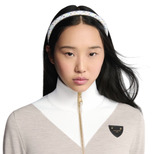 The LV x TM Monogram Multicolor headband features an eye-catching motif from the House’s exclusive collaboration with Takashi Murakami. Styled in fine leather, it showcases the illustrious Japanese artist’s rainbow-colored version of the iconic Monogram pattern for a burst of upbeat energy. This fun, practical headband enlivens any hairstyle with a playful signature touch.