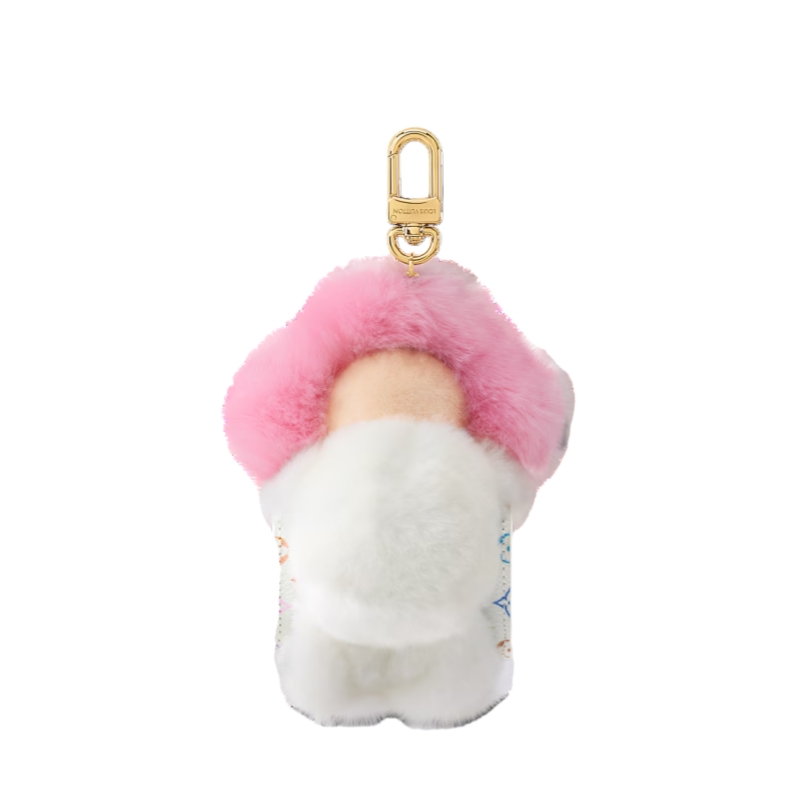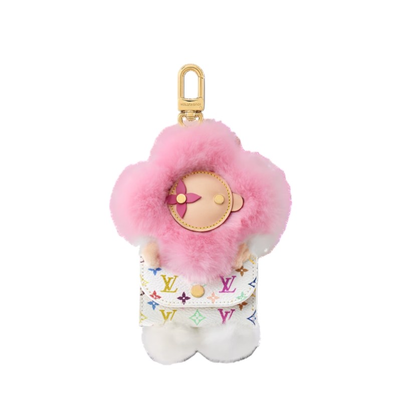 The adorable LV x TM Vivienne Cuddle bag charm combines modern-day utility with an original Louis Vuitton signature. The House’s lovable mascot comes with a faux fur collar, holding a canvas pouch adorned with the eye-catching Monogram Multicolor motif, created by the renowned Japanese artist Takashi Murakami. Perfect for storing earbuds while adding an on-trend accent to any handbag.