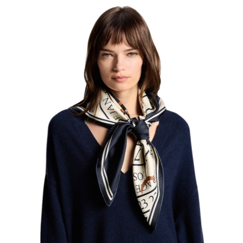 With its spectacular pattern, this extraordinary silk square is a wearable masterpiece. Entitled Le Temps d’Un Voyage, it was originally created in the 1980s by the influential Italian architect and designer Gae Aulenti, inspired by the monumental world clock of the Musée d’Orsay in Paris. A precious accessory, and an eloquent ode to the spirit of travel and artistic creation.