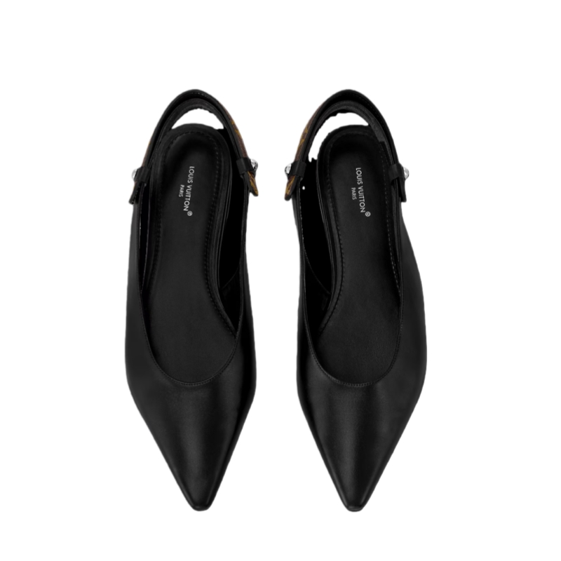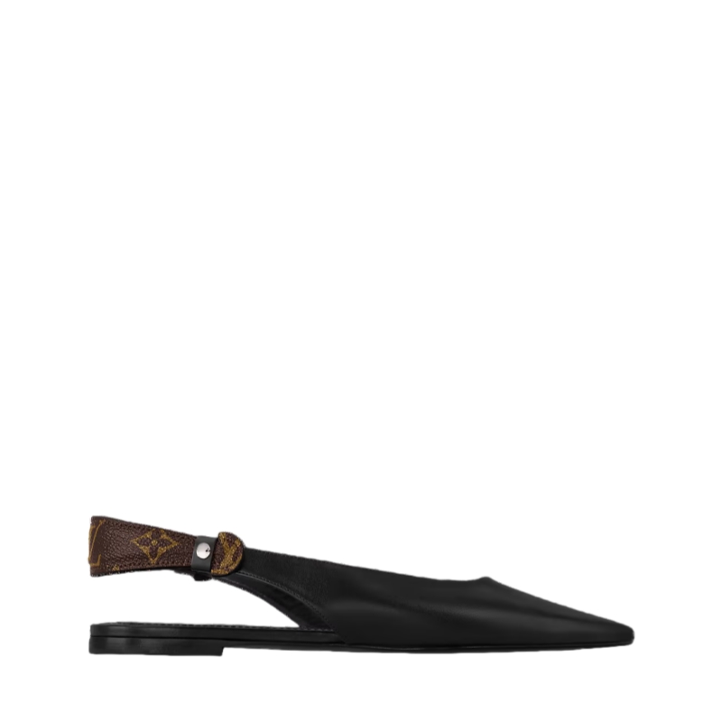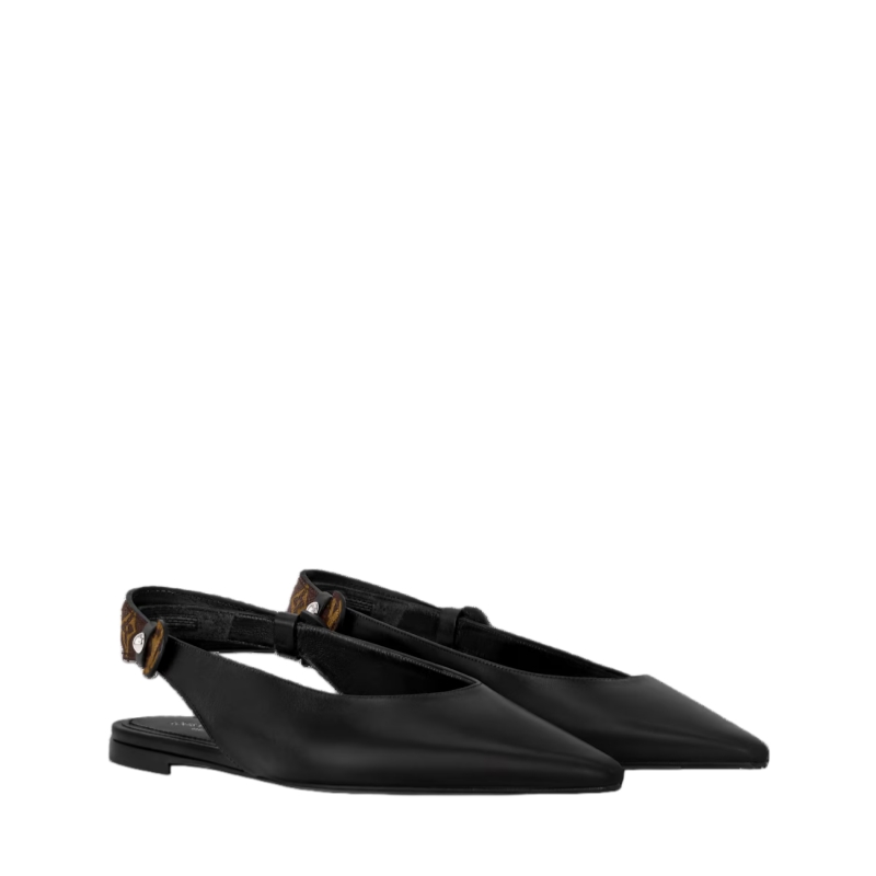 The Legacy slingback ballerina in smooth calf leather is a sophisticated style inspired by the House's travel heritage. Its key detail is a back strap in Monogram canvas, which is shaped like a trunk handle and embellished with engraved metal studs. This feminine ballet flat has a pointed toe and a fine leather outsole.