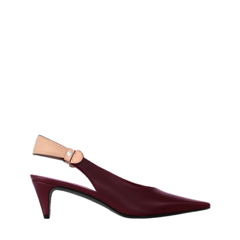 The Legacy slingback pump in smooth calf leather takes inspiration from the House's travel heritage for its key detail: a back strap in natural leather shaped like the handle of a Louis Vuitton trunk. Engraved metal studs further embellish this refined style, which is distinguished by its pointed toe and easy-to-wear kitten heel.