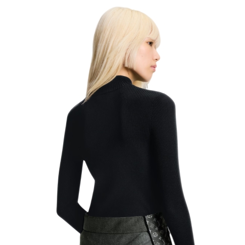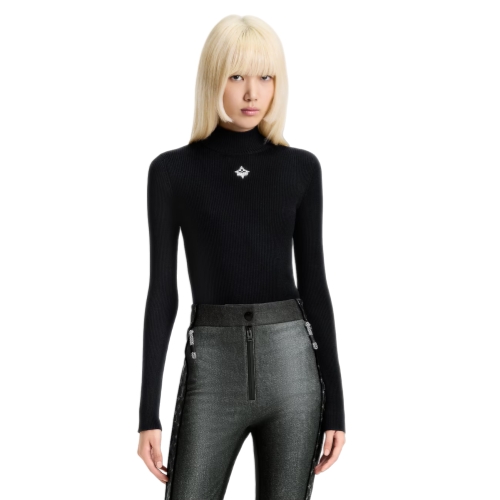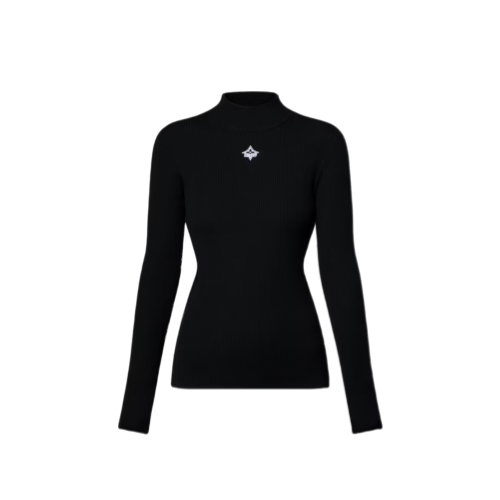 This sleek long-sleeved top forms the base layer of a functional winter-sports look, crafted from a technical wool blend in a fine, flexible ribbed-knit finish for elevated warmth. It is crafted in a flattering fitted silhouette with a chic mock neck. A seasonal Monogram Flower patch adds a graphic signature accent to the chest.