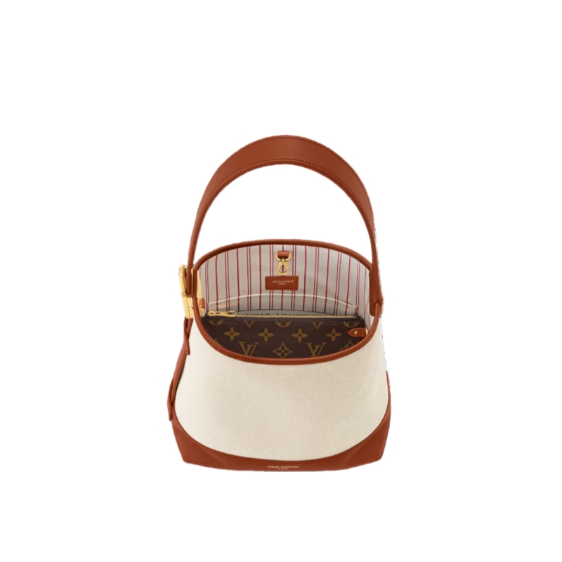 The Low Key Hobo PM is reimagined in natural canvas and calf leather, creating an elegant textural contrast that is perfect for the season ahead. Channeling the House’s trunk-making beginnings, this effortless model is elevated with aged gold-toned hardware and comes with a removable Monogram zipped pouch. The striped lining adds attention to detail.