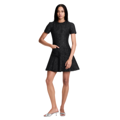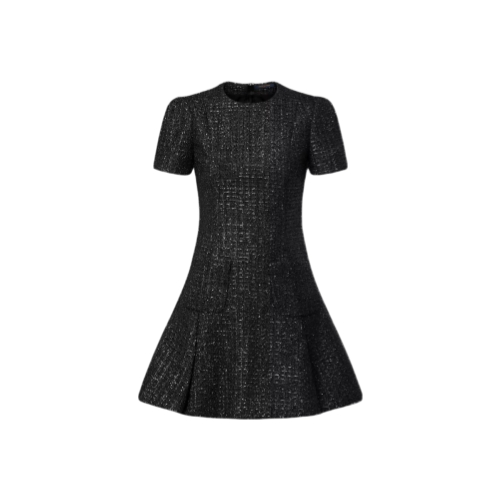 This dress is uplifted in this season’s shimmering lurex tweed for a spirited yet sophisticated look. The top half is cut in a fitted shape with elegant short sleeves, while the skirt is structured with box pleats and two patch pockets. The back is fastened with an exposed zipper trimmed with a signature snowflake pull.